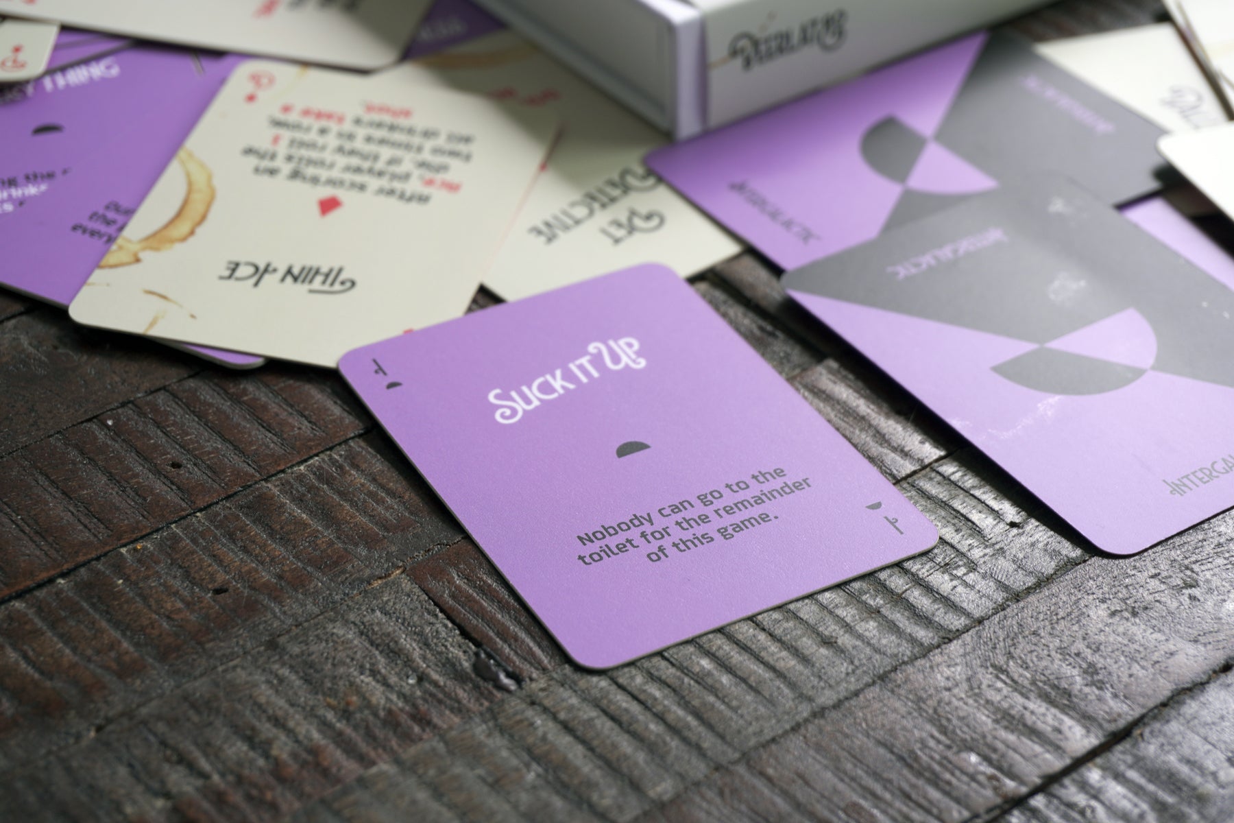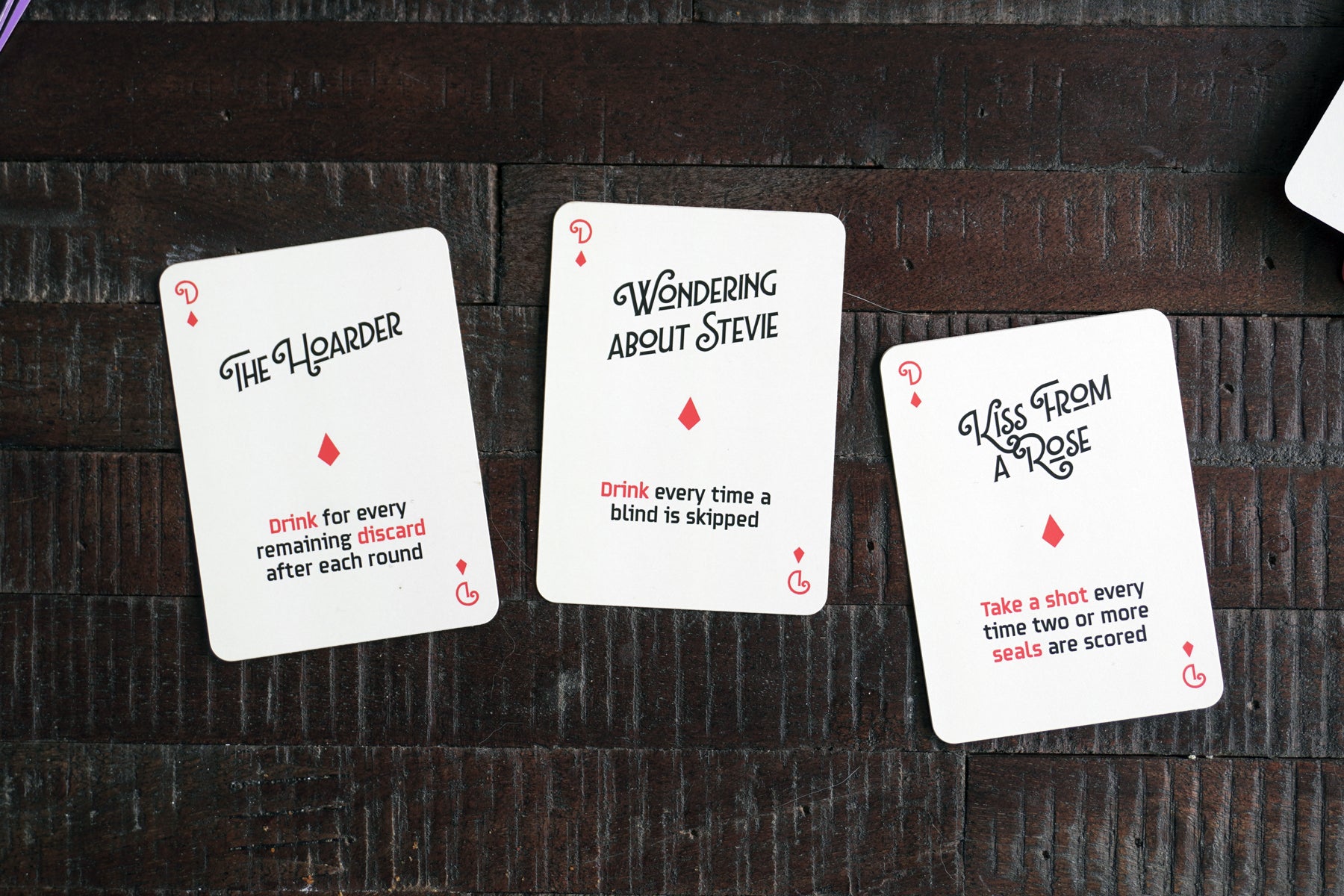 These are additional Joker-like cards that are put on the table and remain there for the entire run. They describe circumstances or situations in which the player or the drinkers have to, well, you know... drink.